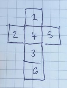 | The net of a butterfly dice | The pattern of a butterfly dice |