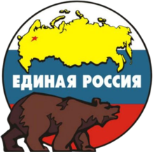 | All-Russian Party of Unity and Fatherland, merged in 2001, used the modern darker tones | United Russia, 2001–2005, used the even darker evening tones | United Russia, present, uses the purported ’91–’93 tones |