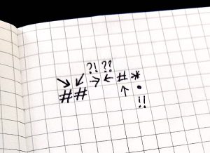 With two parallel tracks being the best layout so far, we can look to expand the key. If White is frustrated and panicked and Black is biding his time for the perfect strike, how could we denote that? We can lift the following from algebraic chess: (I’ve marked the ones we’re using in our example below)
